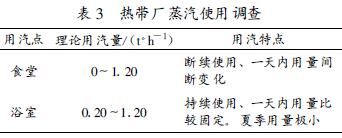 熱帶廠蒸汽使用量從一天的時間段來看,存在著用量大小變化大、短時間集中用汽、大部分時間用汽小而均勻的特點。按季節來看,冬季的用汽量要明顯大于夏季。表3對熱帶廠的蒸汽使用情況作了簡單分析。