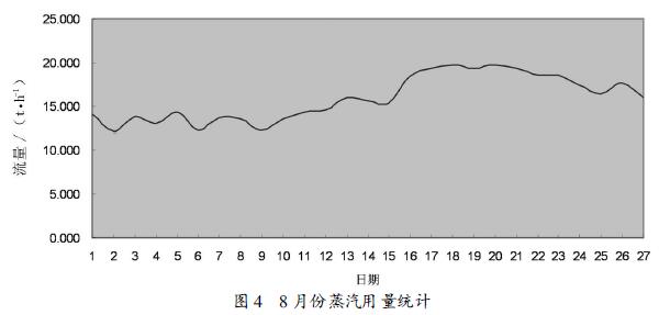 抗振型渦街蒸汽流量計使用一個月,對數據進行收集和統計,得到每天蒸汽用量(參見圖4)。