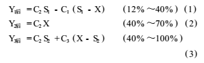 其中:Y1后、Y2后、Y3后分別為修正后*一段、*二段、*三段的流量指示值;X為隨機定量給出的實際流量值;S1、S2分別為段間流量的當量值,即:未乘系數時的當量流量。