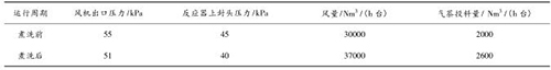 主蒸汽流量計煮洗吹掃后,裝置運行期間無燃爆事故,且裝置運行的風量明顯提高,系統阻力明顯降低,投料量增加。現將煮洗前后的運行數據對比如下: