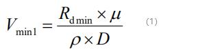式中:Vmin1--基于雷諾數限制的工況流速下限,m/s;Rd min--為保證標稱準確度,所需非常小雷諾數;μ--流體在工況下的動力黏度,cP 或 mPa·s;ρ--流體工況密度,kg/m3;D--管道內徑,mm。對于黏度高于1cP的液體流量檢測或小于DN40的小口徑規(guī)格的選用,應不可省略雷諾數下限的核算。