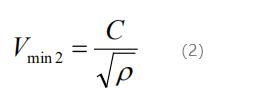 式中:Vmin2--基于信號處理系統(tǒng)增益及系統(tǒng)抗干擾能力的流速下限,m/s;C--常數,由信號處理系統(tǒng)的增益及抗干擾能力共同決定 , 各產品存在明顯差異;ρ--流體工況密度,kg/m3。