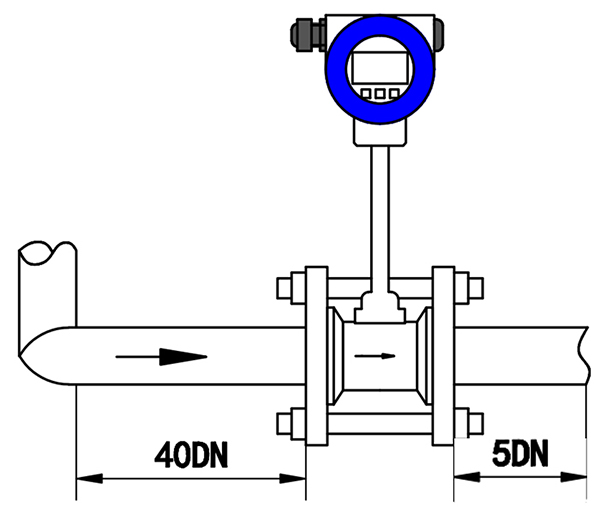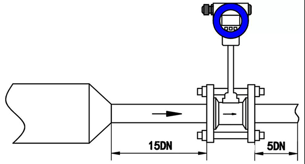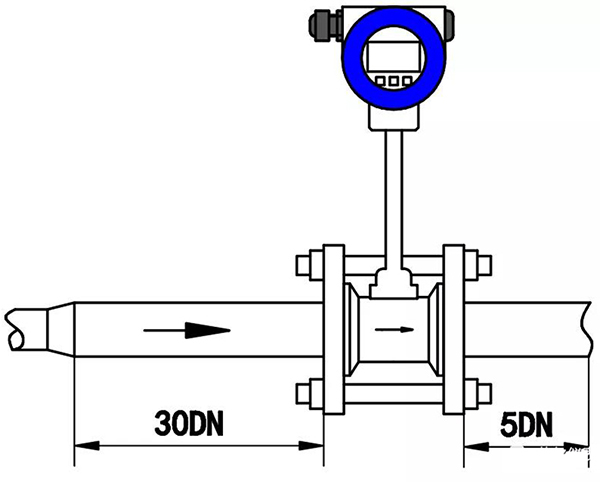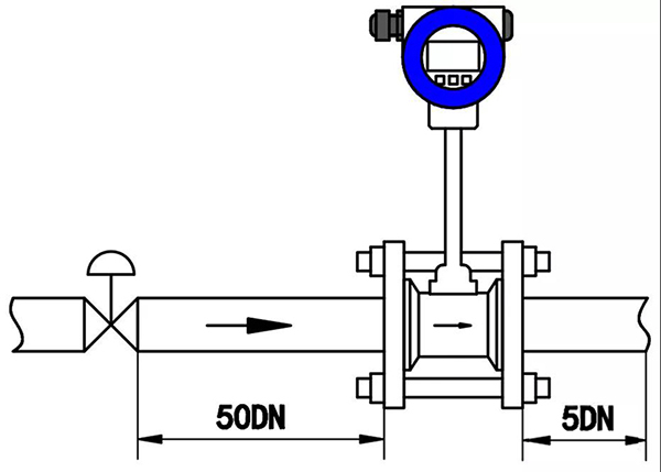 2、調節閥盡可能不安裝在空氣渦街流量計的上游,而應安裝在空氣渦街流量計的下游10D處。