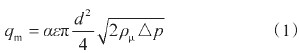 式中,qm為質量流量,kg/s;α為流量系數;ε為氣體膨脹系數;D為孔板內徑,m;ρu為孔板上游流體密度,kg/m3;△p為通過孔板的壓差,Pa。