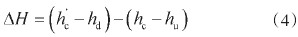 式中,ΔH為增加的有效功,kJ/kg;hc為風機前有節流孔板時,氣體等熵壓縮至出口壓力pc對應的焓值,kJ/kg;hc為風機前無節流孔板時,氣體等熵壓縮至出氣壓力;pc為對應的焓值,kJ/kg;pc為風機出口壓力,Pa。