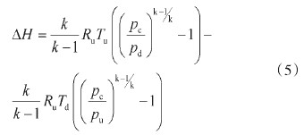 當工作介質為理想氣體時,風機壓縮過程為可逆絕熱,孔板節流引起機組有效功增加可按公式(5)計算: