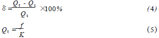 將氫氣流量計在標準水裝置上,分別用頻譜分析和脈沖計數的方法進行標定,流體介質為水未加氣體,采用的標準傳感器為精度等級為0.2級的電磁流量計。在每個流量測量點上的儀表系數用公式(1)計算,然后用式(2)計算得到*終儀表系數K。Ql為被測水的流量值,f為每一個流量點得到的頻率,k為每個測量點得到的儀表系數。kmax、kmin分別為試驗流量范圍內得到的*大與*小的儀表系數。儀表系數的線性度E1用式(3)來計算。